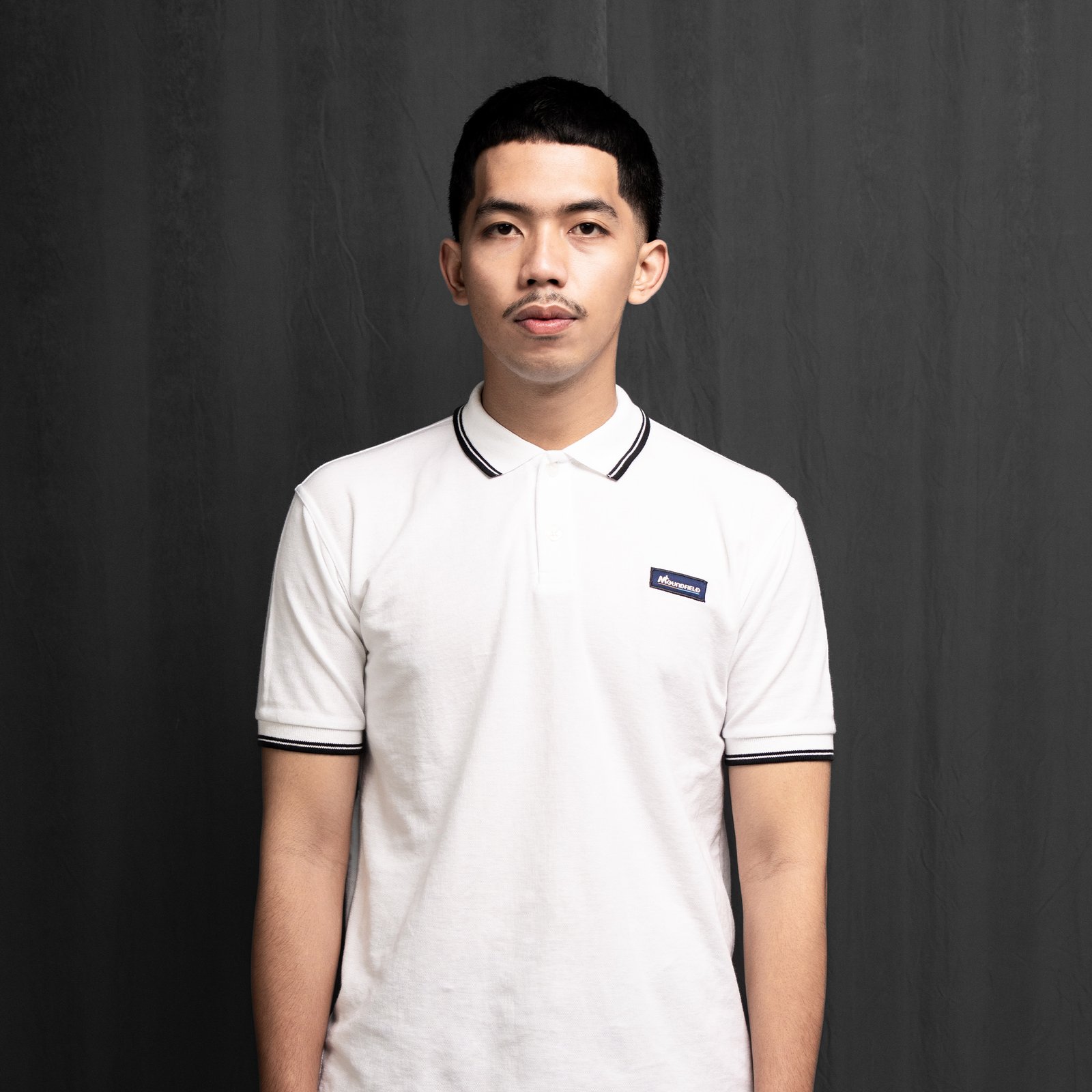 One of the signature details of this polo is the two-line accent on the collar and sleeve rib in black, creating a bold yet elegant contrast against the white fabric. This subtle but distinctive detail strengthens the recognizable Moundfield identity while adding a refined touch to the classic polo silhouette.